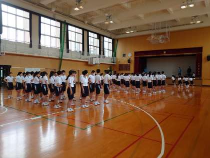 本日、2年生は特活の時間を使って、集団行動の練習と発表会を行いました。