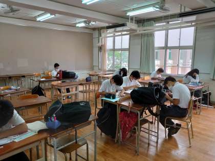 本日、参加者が非常に多く、2教室に分けて行いました。学習、テストに対する意識が高まっています。集中して、まっすぐな心で取り組みます。