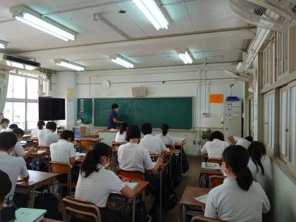 社会では新聞を教材として学習しています。数学はプリントで基礎的な内容の振り返りを行っています。