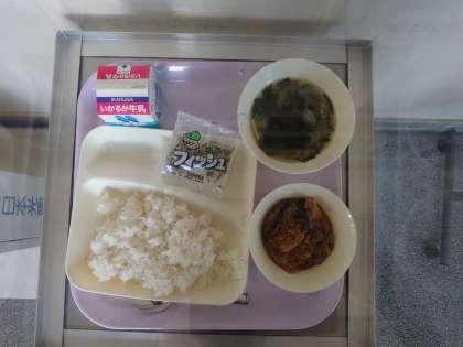 (米飯)マーボーあつあげ丼、中華スープ、ミニフィッシュ、牛乳