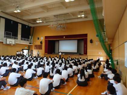 毎週月曜日は、全校集会の日です。開始5分前には整列完了できるように、早めの登校を心掛けてください。
