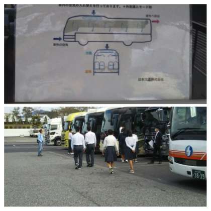 学校を出発してから3時間弱、2回目のトイレ休憩場所の勝央SAに到着しました。順調に進んでいます。バスの車内空調もしっかり行ってもらっています。森の国大山には行程より少し早く到着する予定です。