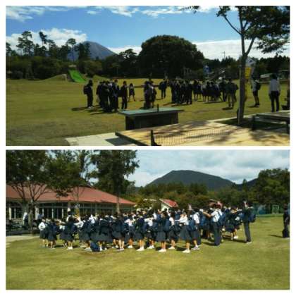 大山森の国に到着しました。集合写真をこのあと撮影します。