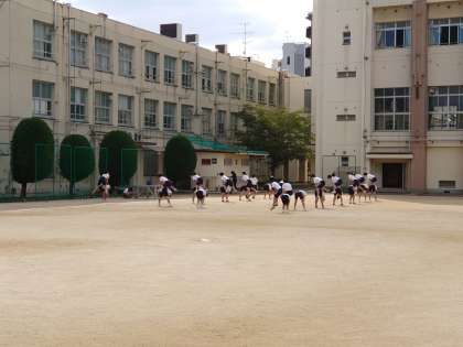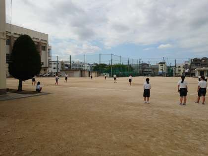女子体育の授業の様子です。球技の運動に取り組んでいます。
