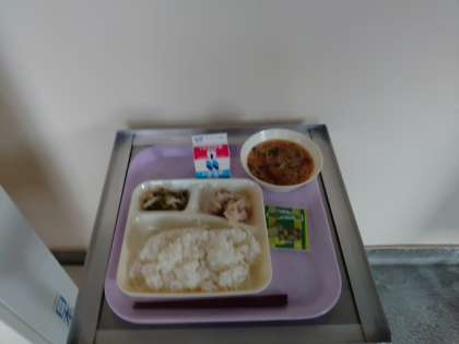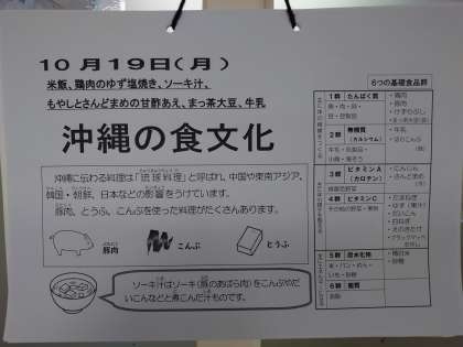 米飯、鶏肉のゆず塩焼き、ソーキ汁、もやしとさんどまめの甘酢あえ、まっ茶大豆、牛乳