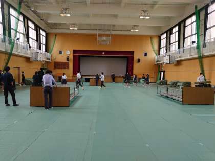 明日の文化発表会に向けて、会場や展示の準備が進められています。
