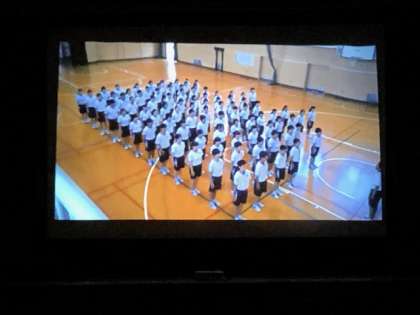体育の発表の様子です。集団行動やラジオ体操の取組を放映しました。