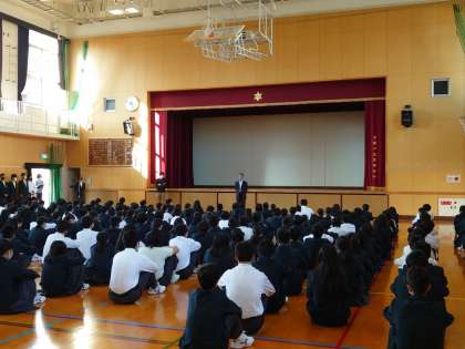 ・学級旗コンクール賞状…どれも素晴らしい出来です。生徒会本部役員から、3年1組が賞状を受け取りました。