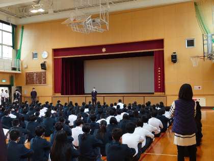 生徒指導主事から防寒着について、更に服装を整えることについての話がありました。