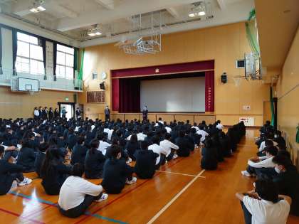 本日の全校集会では、校長先生からは、体育大会に向けて体調管理を心掛けること、そして、本番に向けて協力と頑張りを見せることについてのお話がありました。