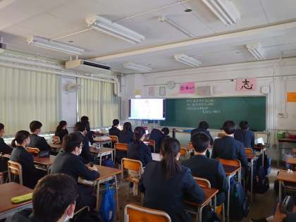 例年であれば、全校生徒が体育館に集まって行うのですが、今年度は放送とTeamsを使って行いました。