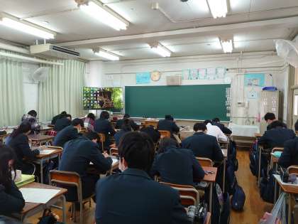 3年生の理科では、科学技術と人間との関わりについて学習しています。社会と理科では、プリントを使って振り返りを行っています。