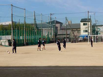 3年体育の授業の様子です。ゴール型の球技に取り組んでいます。男子は「サッカー」、女子は「バスケットボール」を学習しています。