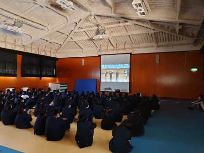 本日、1年生に部活動紹介が行われました。今年度は、事前に各部活動の紹介映像を撮り、それを放送しました。