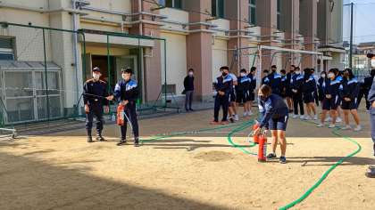 3年生は「初期消火訓練」「日用品を使った応急処置」を行いました。
