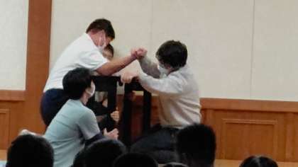 1日目の夜、レクリエーションの腕相撲の様子です。