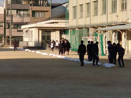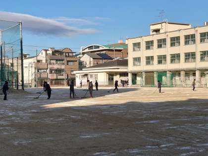 今日は、普段グラウンドを使っている部活動で、グラウンド周りの清掃と整備(にがりまき)を行いました。