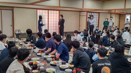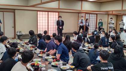 2日目の宿舎に到着しました。夕食の前に入館式を行いました。
