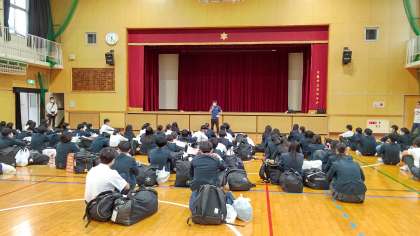 予定の時刻に帰校しました。体育館で帰校式を行いました。お疲れさまでした。明日から修学旅行の振り返りを行い、今後の学校生活に活かしていきましょう。