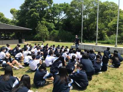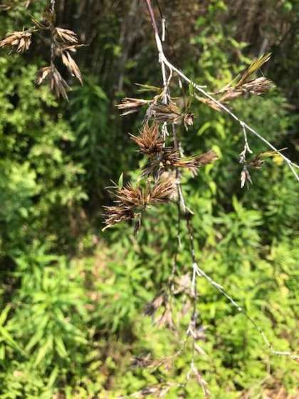 到着してすぐの駐車場には竹の花が咲いていました。約100年に一度しか開花しないそうです。貴重な体験から活動が始まりました。
