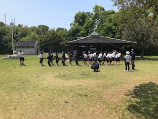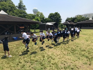 昼食後の休憩時間を利用して、明日の大縄跳び大会に向けてクラスごとに練習が始まりました。