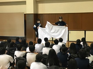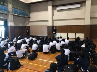 外での充実したプログラムを終え、体育館内に入り入所式を行いました。