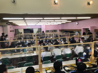 飛沫防止シートで感染対策をして、夕食の時間です。