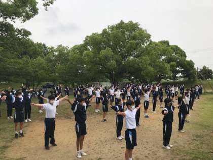 委員長の進行で朝の集いを行いました。元気にラジオ体操をしてから食堂へ移動して朝食です。
