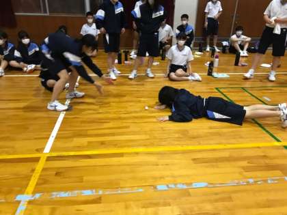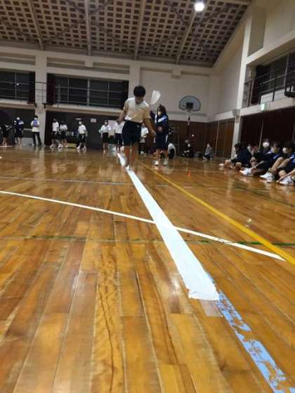 卓球(ピンポン玉を息で吹いてリレー)