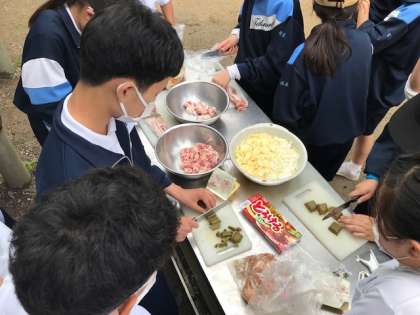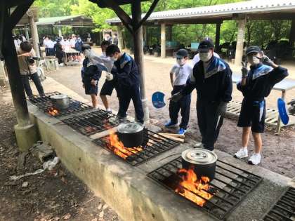 天候にも恵まれて、みんなで協力してカレーづくりです。