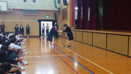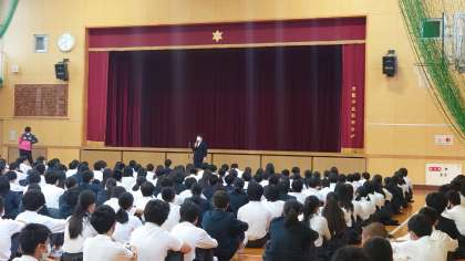 最初に生野警察署が募集している標語の表彰がありました。一年生の作品が優秀作品に選ばれました。