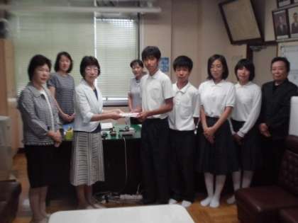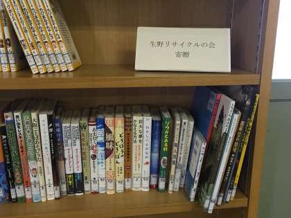生野リサイクルの会より図書をいただき、贈呈式を7月16日に行いました。ありがとうございました。いただいた本は生徒たちが有効利用できるよう図書室の特別コーナーに設置しております。