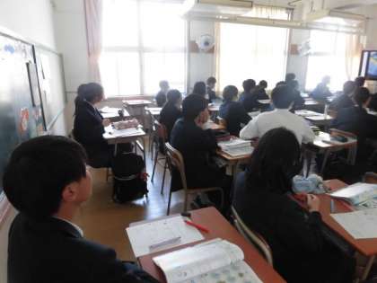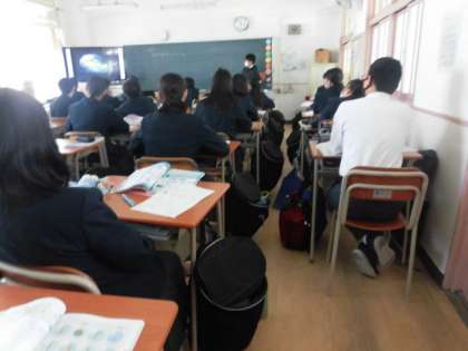 顕微鏡の使い方を覚えるために、ミジンコを例にしたVTRを見ています。