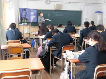近代の日本の文化人について、お話を聞いています。しっかりと覚えていこうね。