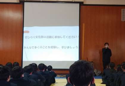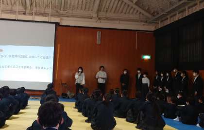 本日は、一年生に向けて、巽中学校の国際クラブのオリエンテーションを行いました。