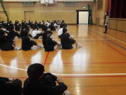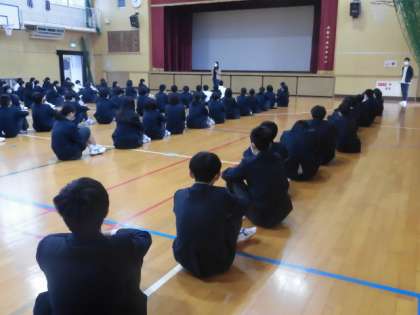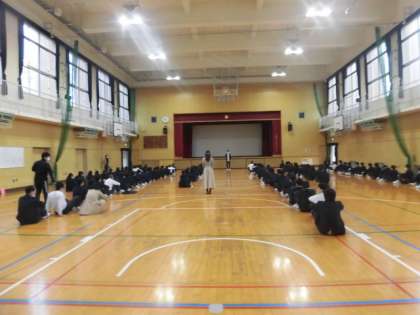 雨でしたが、しっかりと集合することができ、集会を行っています。ヘッドハンターも経歴よりも人間性を見てるので、中学生のこの時期から人間性を磨いていくことが大事だよ、というお話でした。
