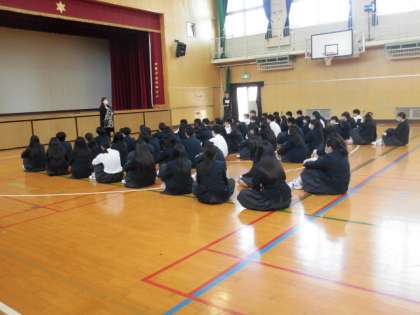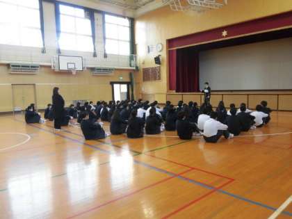 今日は3年生の学年集会の日です。新しいクラスを大切にして、仲の良い子ばかりで固まらずに、男女仲良くしていきましょう、というお話でした。
