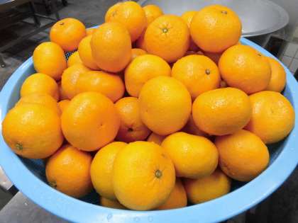 今日の果物は、「あまなつかん」です。夏みかんから生まれた、さわやかで甘ずっぱい味が特徴です。鹿児島県から届きました。かぜを防ぐ、ビタミンCがたっぷりです。