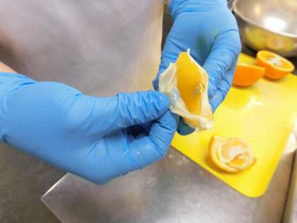 皮と実の境目に切れ目を入れてくださっています。落とさないように上手にはずして、皮をむいて食べましょう。