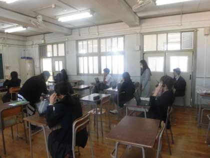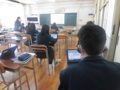 今日は3年生は、先日行われた全国学力学習状況調査の話すこと調査(英語)を実施しました。自分のタブレットに音声を入力していきますが、接続するにも時間がかかりました。初めてのテスト形式に戸惑いながらも、一生懸命、問題に取り組んでいました。
