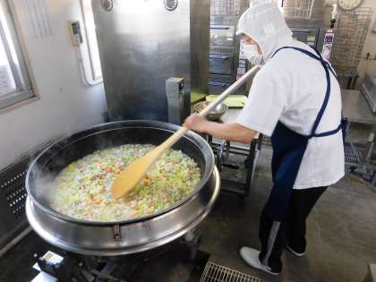 ・豚肉と野菜のカレースープ煮 ・変わりピザ ・ミックスフルーツ(缶) ・黒糖パン ・牛乳 です。