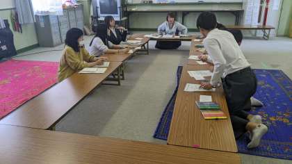 今日から本格的に活動が始まります。「自分らしさはみんなの宝物」ということで花びらに自分らしさを書いていきます