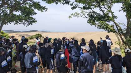 鳥取砂丘が広がっています。注意点を聞いています