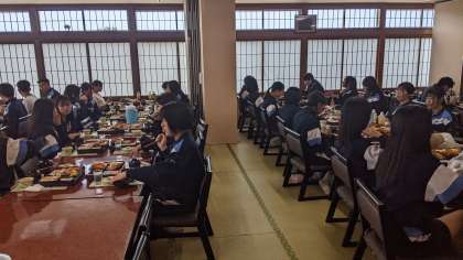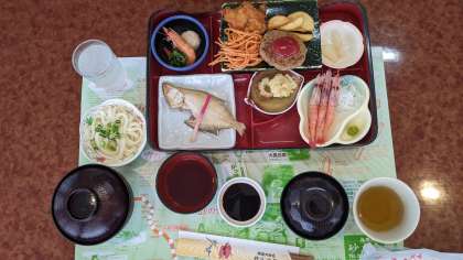 鳥取の名産を集めた昼食です。おいしくいただきます!