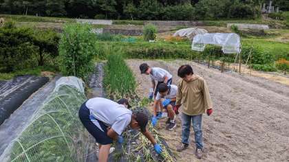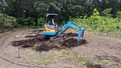 ショベルカーを運転させてもらったり、野菜を収穫したりしています