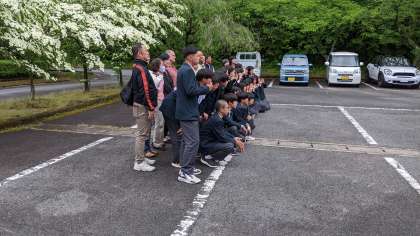クラス毎に民泊の方と写真を撮りました。1組と3組です