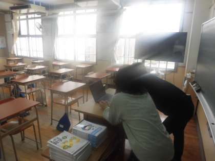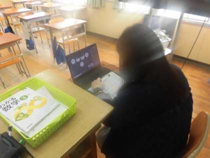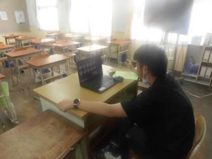 本日は、全学年、1時間目の時間を利用して、双方向オンライン通信のテストをしています。