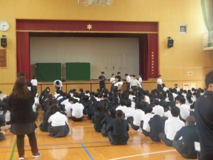 明日は、体育大会なので、6時間目に全員集まって、服装、持ち物、集合時間や行き方などの説明がありました。それぞれの学年で様々な思いがあると思うので、がんばりましょう!とのお話がありました。