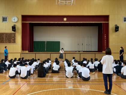 教育実習生の話や1泊移住-レクリエーションの表彰式など実施しました。