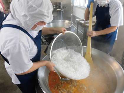 給食では、じゃがいものでんぷんから作られたものを使っています。